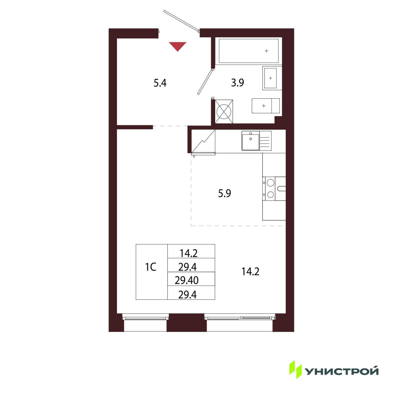 Площадь кухни: 23.17
