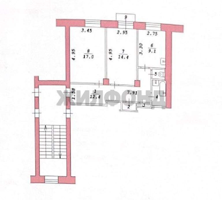Продается полногабаритная квартира в центре Новосибирска на улице Богдана Хмельницкого, дом 46. Общая площадь квартиры составляет 58,7 квадратных метров, расположена на 3 этаже 4-этажного дома.