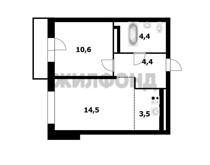 1 комн. квартира по ул. Дунаевского. Общей площадью: 37.40 кв.м.