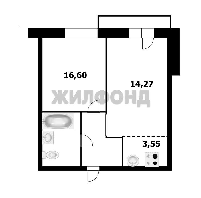 1 комн. квартира по ул. Дунаевского. Общей площадью: 37.18 кв.м.