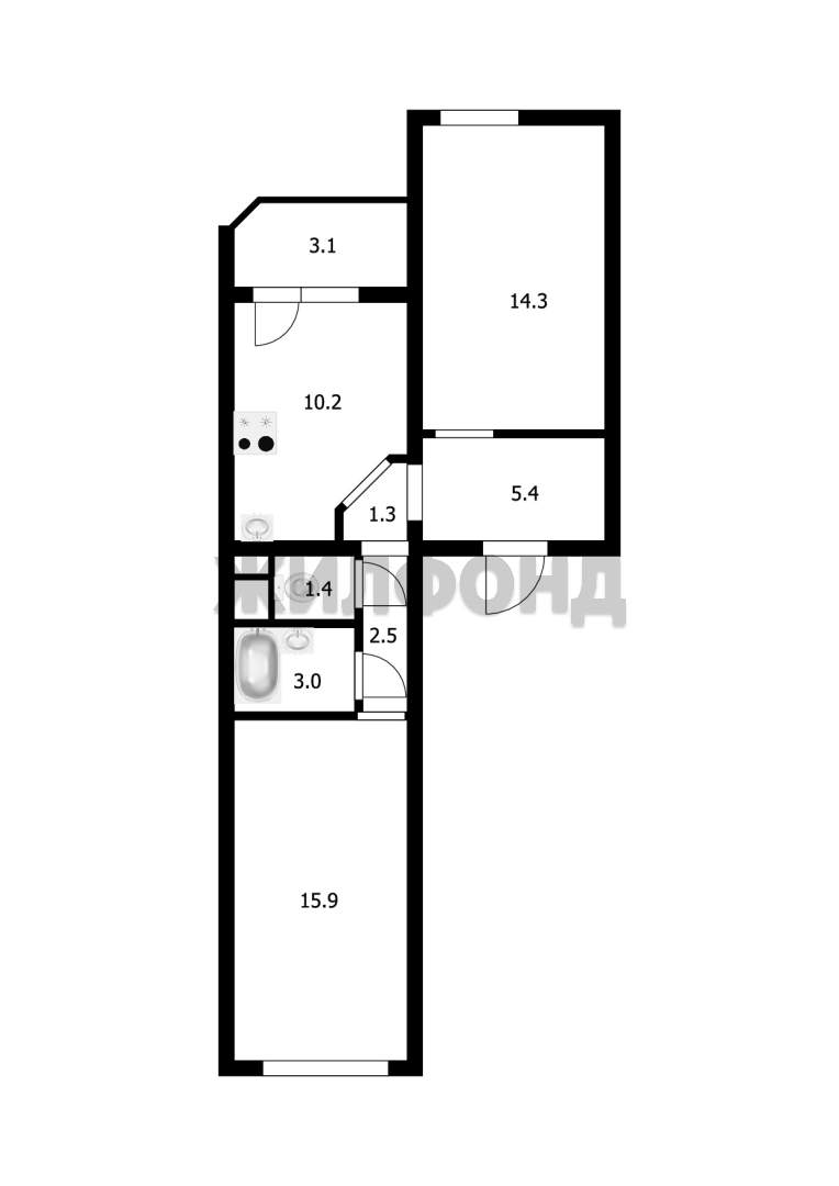 2 комн. квартира по ул. Одоевского. Общей площадью: 55.00 кв.м.