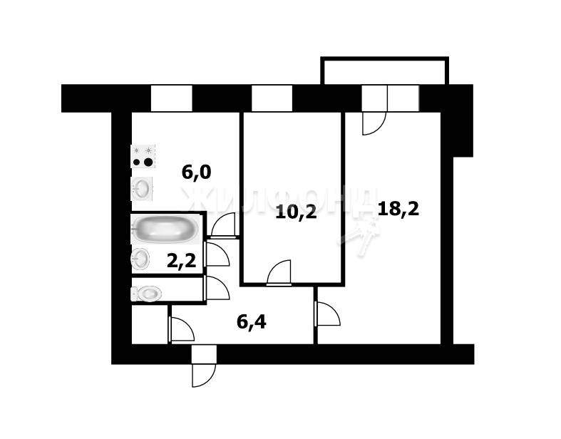 Большая, светлая, полноценная 2-х комнатная квартира, 44.7 кв.м. , с отличной планировкой!