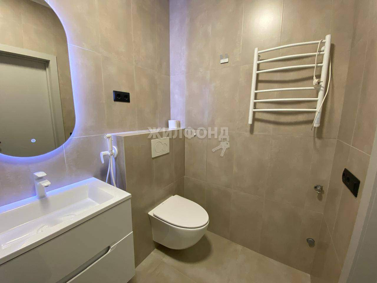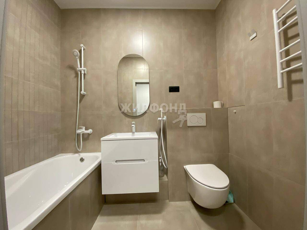 Просторная ванная отделана стильным кафелем, установлена инсталляция , вывод под стиральную машину, полотенцесушитель.