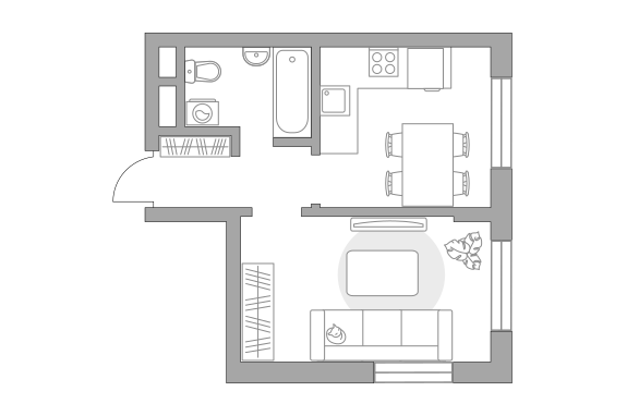 Жилая площадь 26.93 м2, кухня 10.73 м2. Площадь комнат: 16.69/10.24 м2, черновая отделка, окна выходят во двор.
