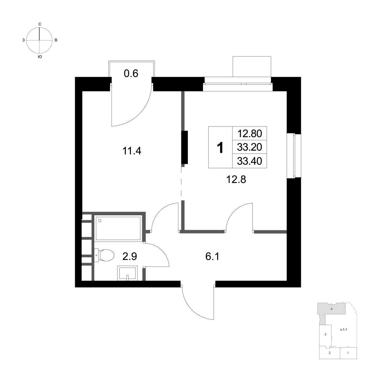 В ЖК «Легенда Марусино» продаётся 1 -к квартира 39.7 кв. м, расположенная на 3 -м этаже 4 -этажного дома.