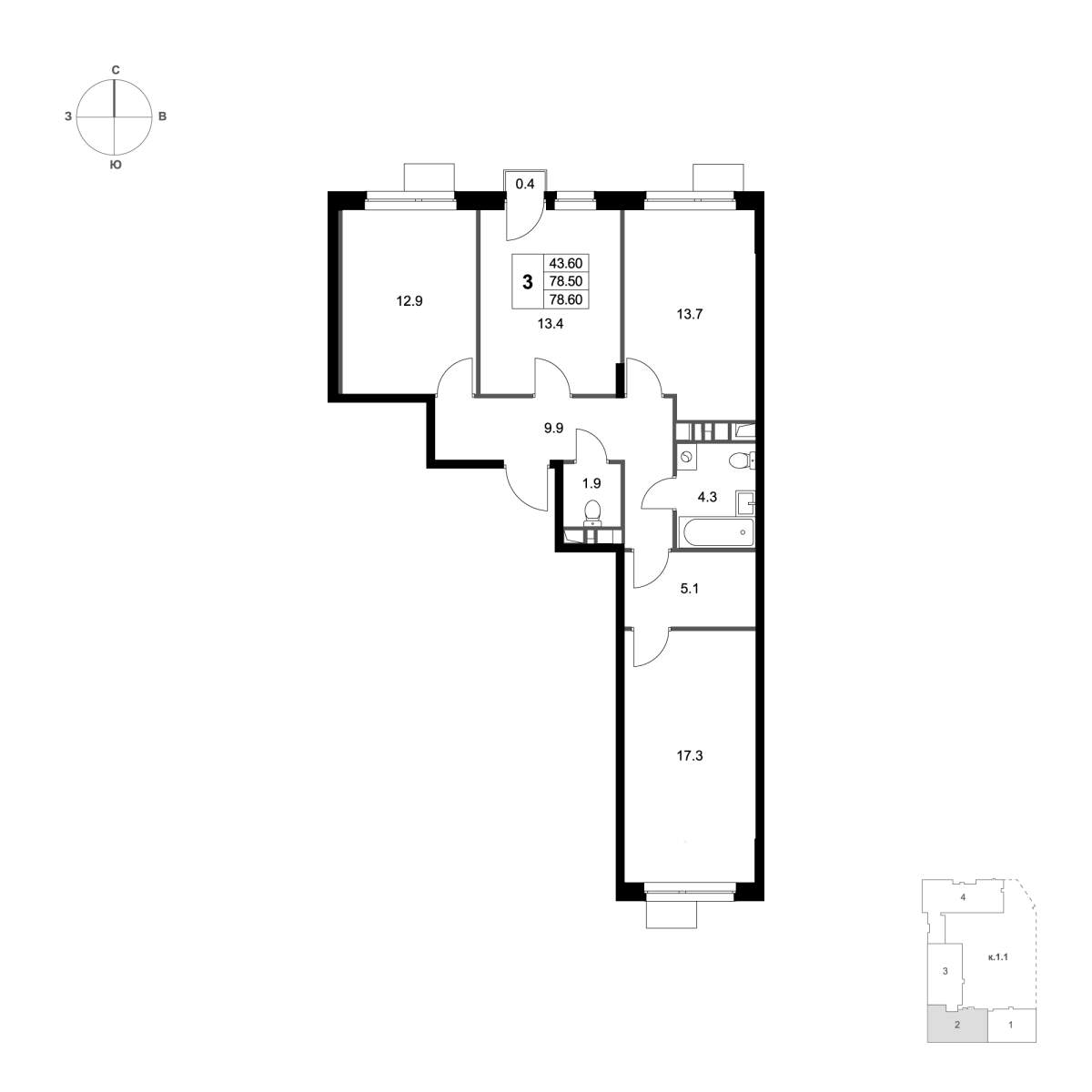 | Жилая площадь: |