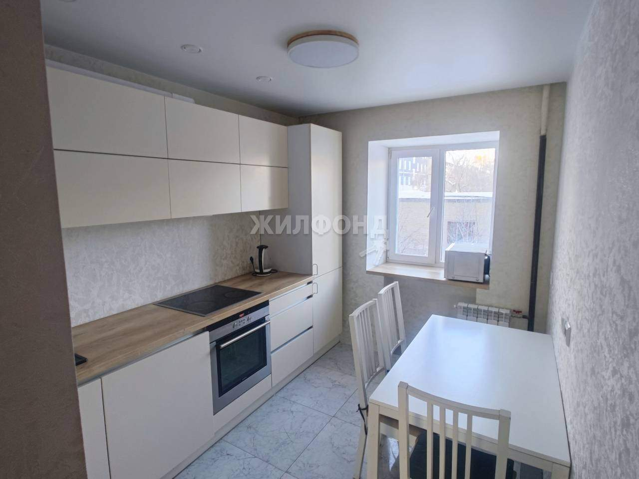 идеально подходит для комфортного приготовления пищи. Окна квартиры выходят на обе стороны, что обеспечивает хорошее естественное освещение.