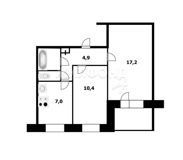 2 комн. квартира по ул. Кропоткина. Общей площадью: 43.50 кв.м.