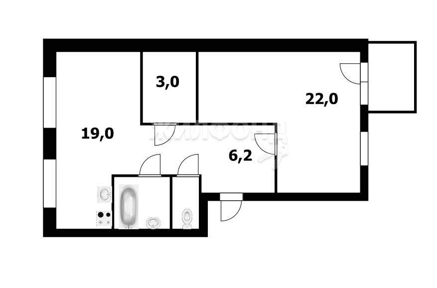 Квартира с просторной кухней-гостиной 18 кв м, большой комнатой 21 кв м, гардеробной, раздельный санузел, прихожая.