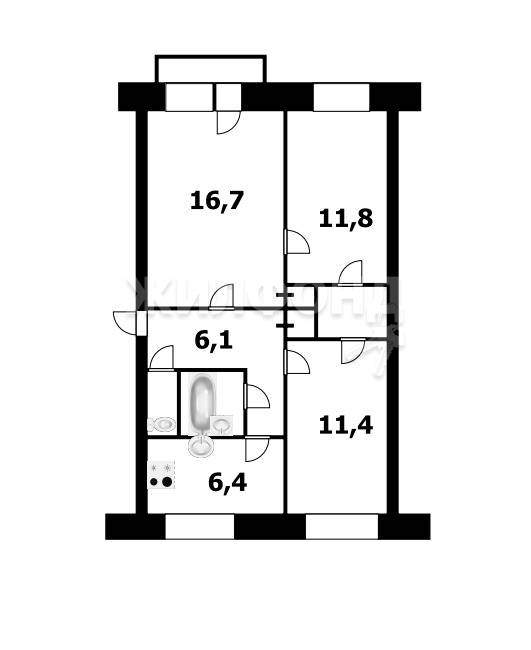 3 комн. квартира по ул. Зорге. Общей площадью: 59.20 кв.м.