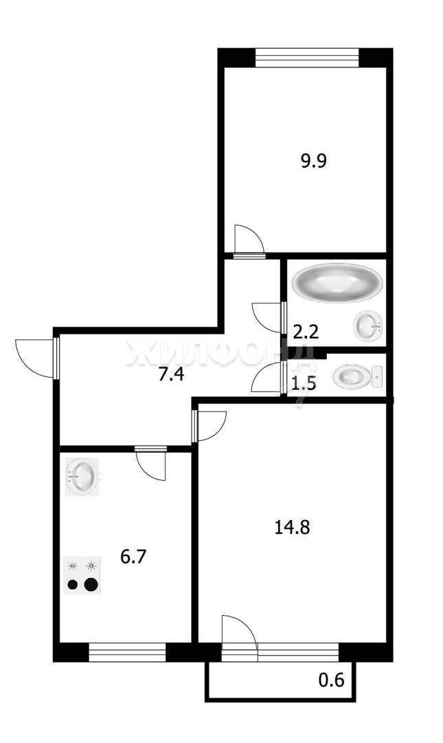 2 комн. квартира по ул. Выборная. Общей площадью: 43.70 кв.м.