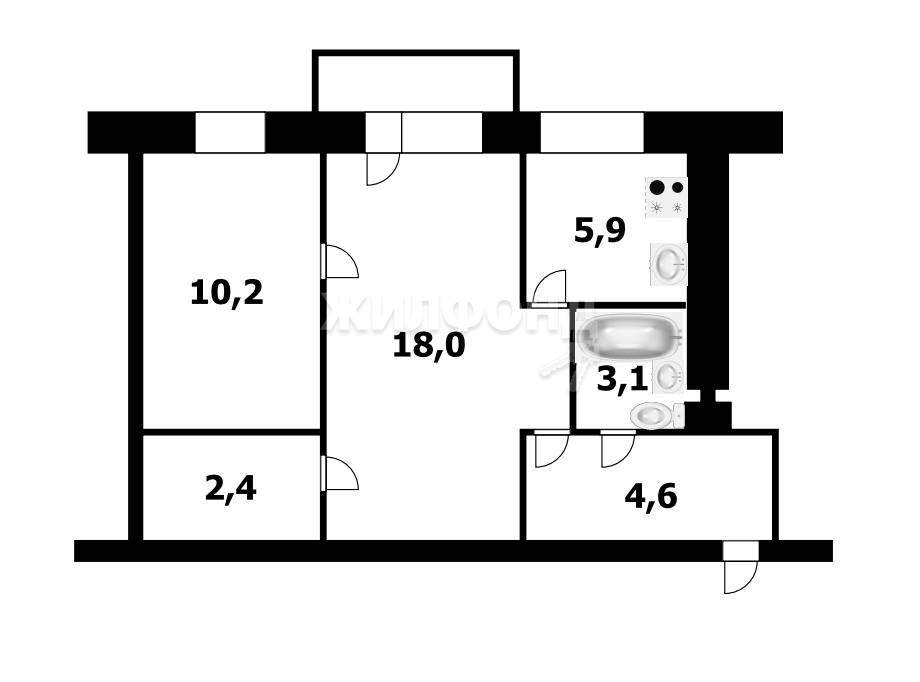 2 комн. квартира по ул. Дзержинского проспект. Общей площадью: 44.20 кв.м.