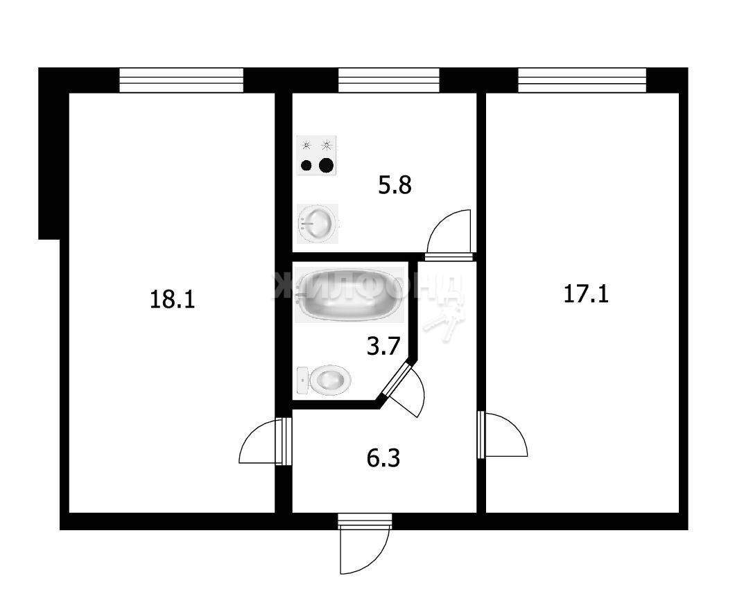 2 комн. квартира по ул. Римского-Корсакова 2-й. Общей площадью: 51.00 кв.м.
