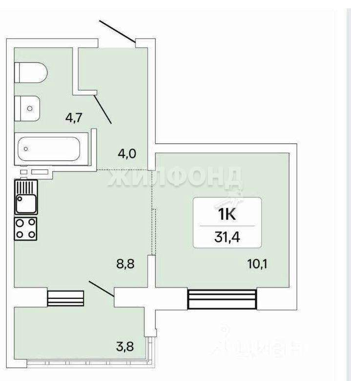 1 комн. квартира по ул. Сибиряков-Гвардейцев. Общей площадью: 31.40 кв.м.