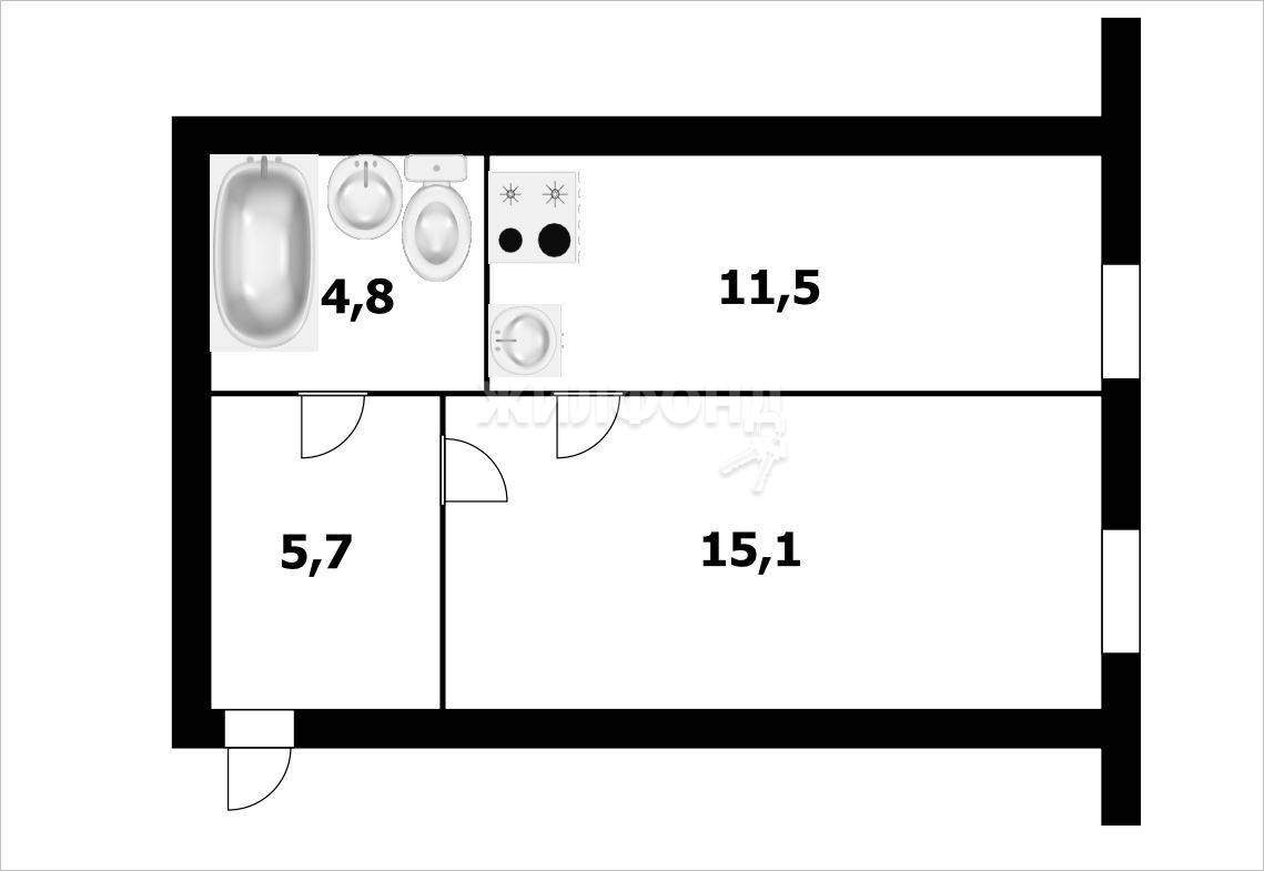 Общая площадь квартиры составляет 37,1 кв.м.