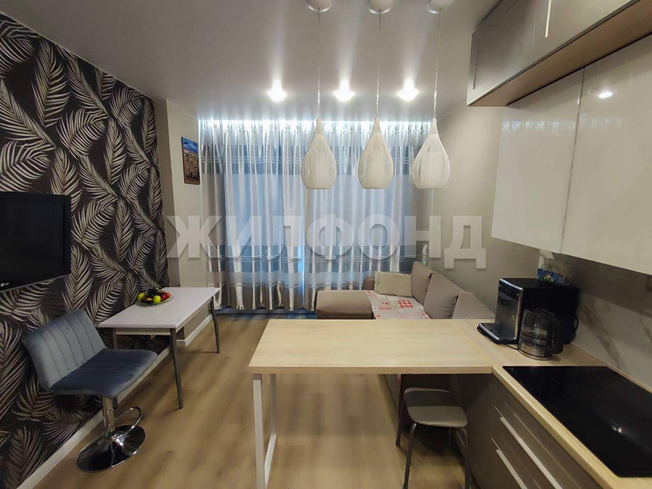 Отдельная кухня и просторная гостиная.