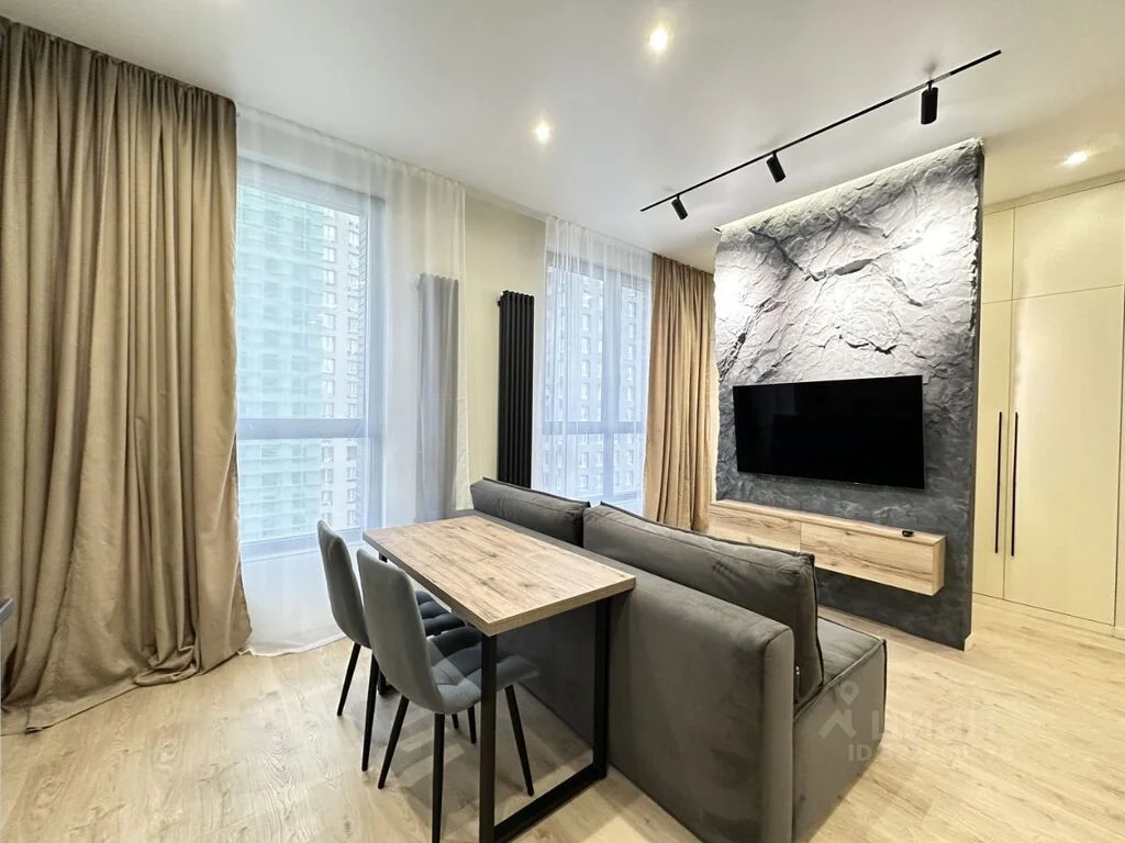 Планировка: кухня-гостиная 15 кв.м., спальня, изолированное рабочее место, совмещенный санузел. Двуспальная кровать, матрас Аскона, уютный раскладной диван, кухонный стол, стулья. Телевизор со Смарт-ТВ, роутер.