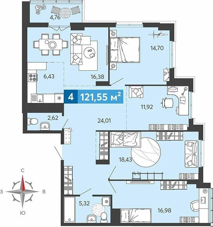 Дом 24 этажа , монолитно/кирпичный , класса «Комфорт +» ,. Срок сдачи 3 квартал 2026 года .