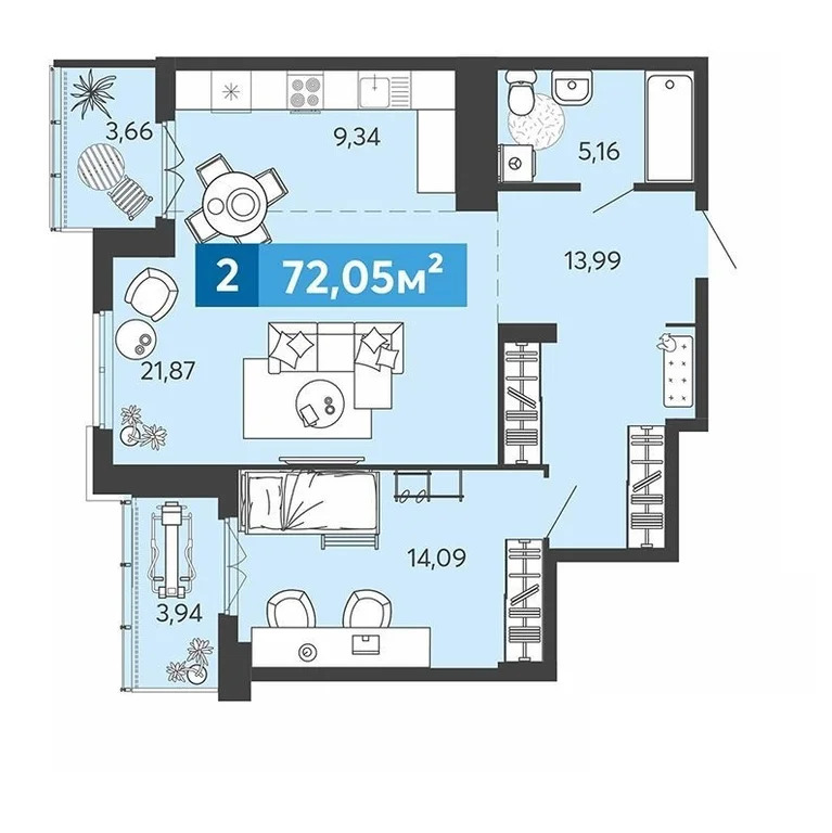 Общая площадь 72,05 м2 . Жилая площадь 35,96 м2 . Кухня 9,34 м2 . Имеется выбор этажей