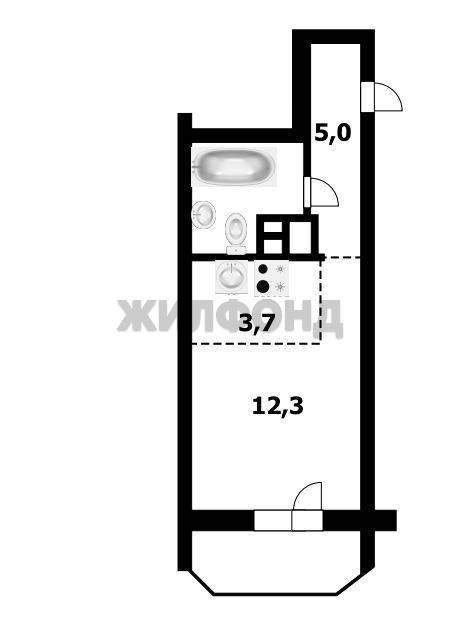 1 комн. квартира по ул. Одоевского. Общей площадью: 23.70 кв.м.