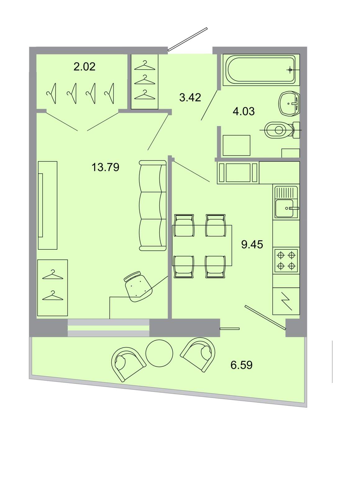 Жилая площадь 34.68 м2, кухня 28.24 м2, чистовая отделка, комнаты изолированные, балконов - 1.