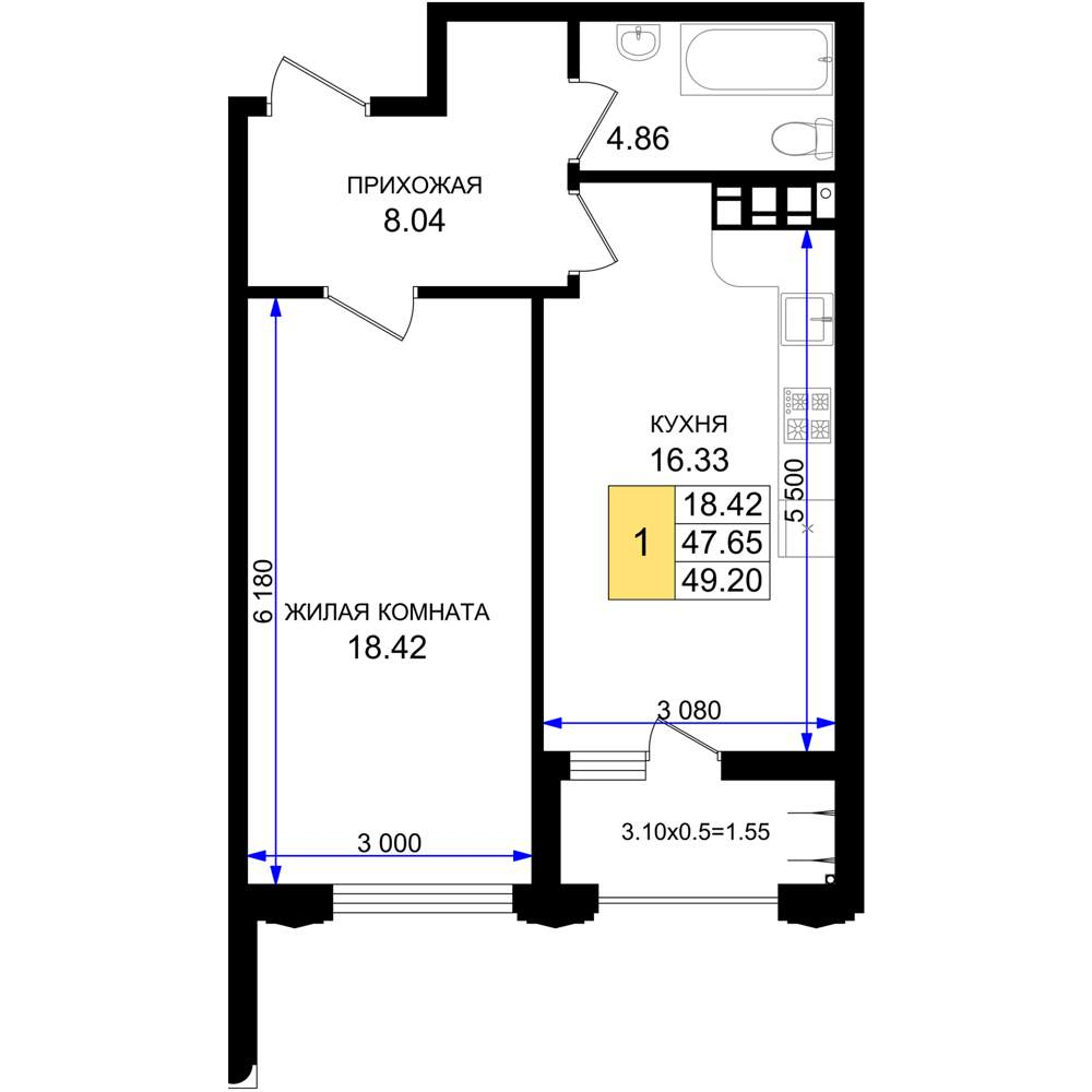 Жилая площадь 38.67 м2, кухня 18.14 м2, предчистовая отделка.