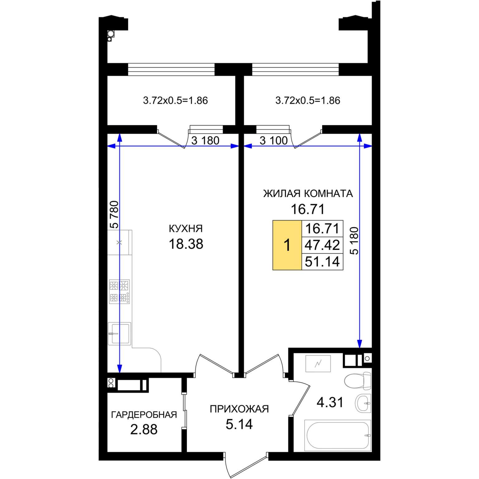 Жилая площадь 11.35 м2, кухня 19.2 м2, предчистовая отделка, комнаты изолированные.