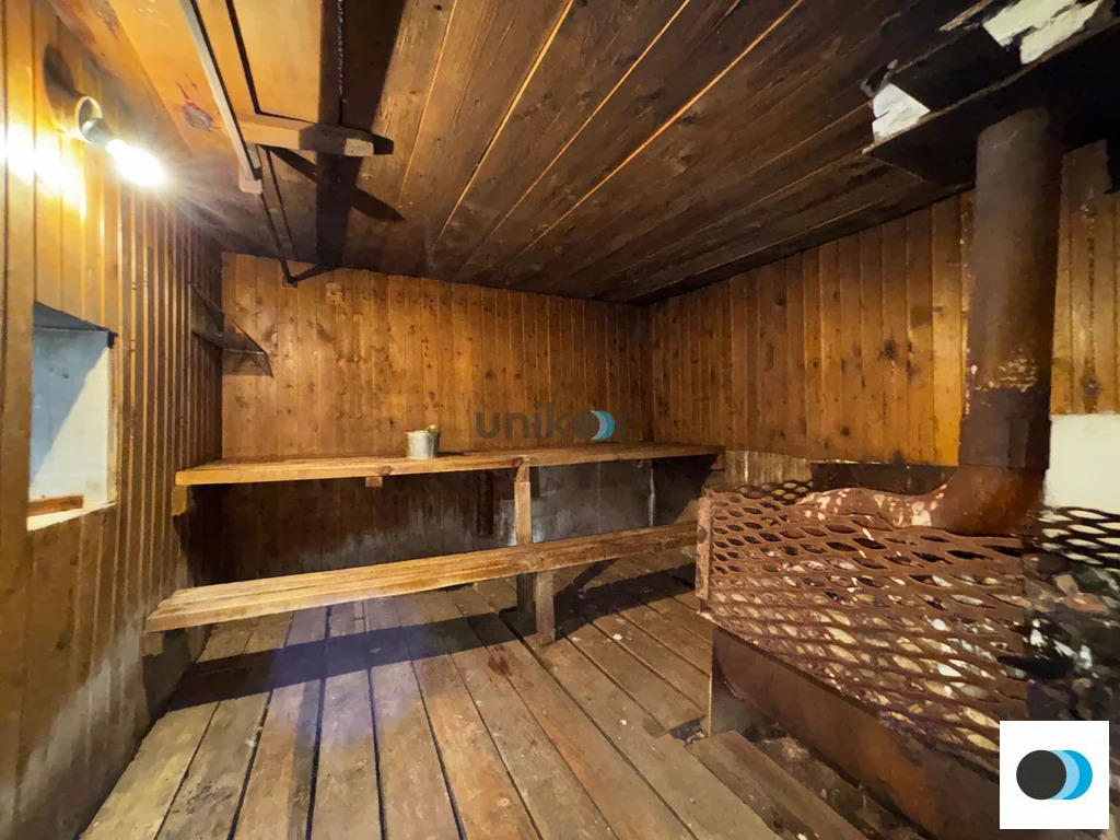 Развитую придомовую территорию: двухэтажный гараж из блоков, баня с тёплым предбанником, сарай.