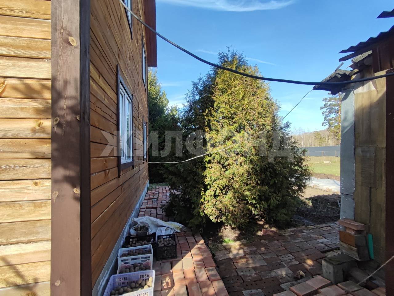 Участок ровный, граничит с лесополосой, соседей не слышно. В зимнее время проезд чистится до дома, и выше по улице. Общество с круглогодичным проживанием.