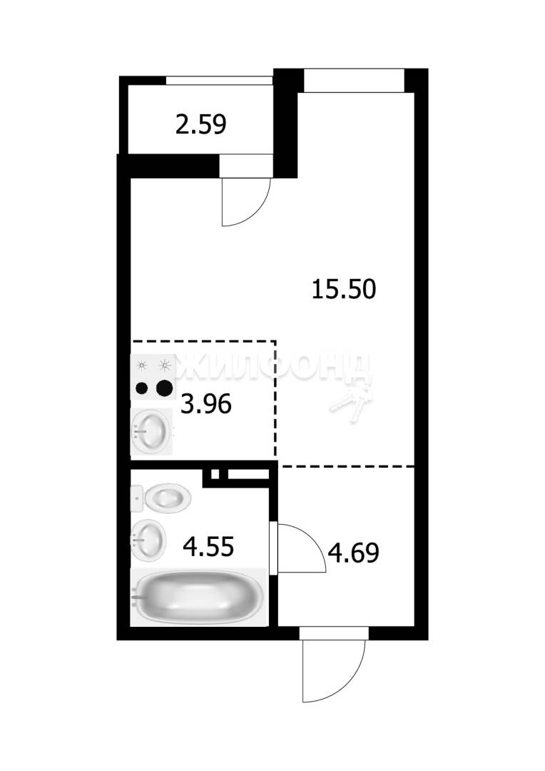 1 комн. квартира по ул. Выборная. Общей площадью: 25.40 кв.м.