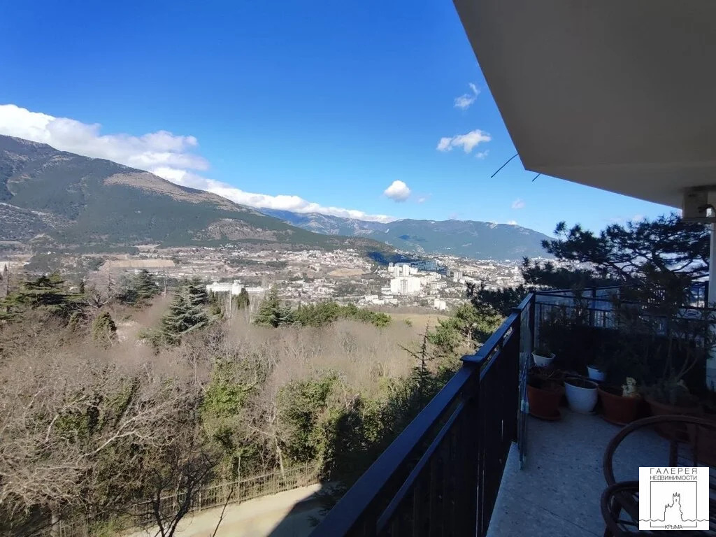 • Вид: Просторный балкон (7 м2) с панорамным видом на водопад Учан-Су и море.