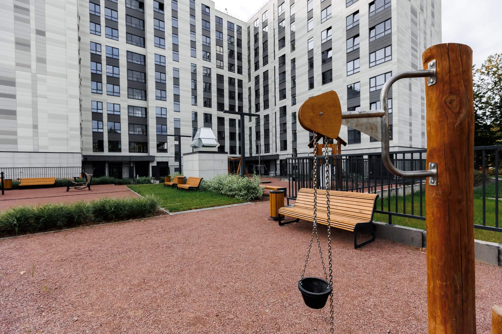 Подземная парковка. Обеспечение безопасности: видеонаблюдение. Инфраструктура: школа, детский сад, детские площадки, спортивные площадки.