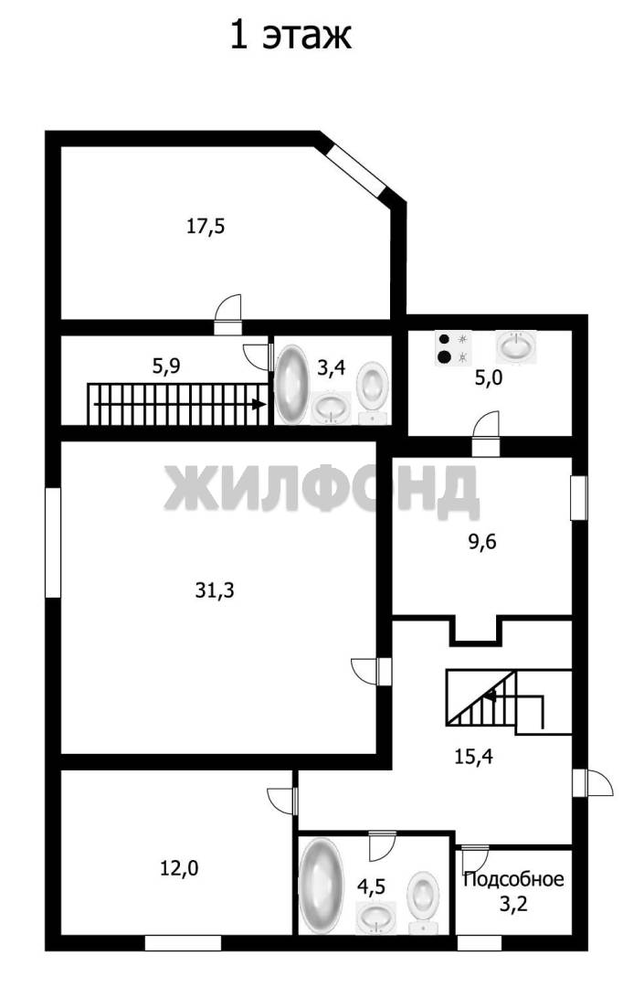 Первый этаж прихожая, санузел, кладовая, кухня гостиная, спальня,большой зал!