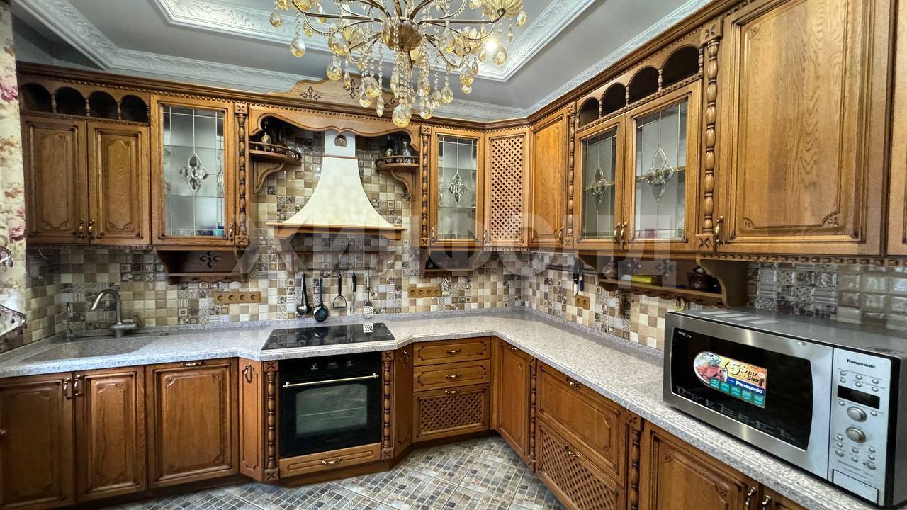 Ремонт выполнен в классическом стиле, использованы качественные импортные материалы. Деревянные детали интерьера и встроенная мебель выполнены по индивидуальному заказу. В доме остаётся встроенная мебель, кухня, светильники.