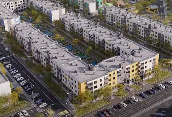 В 10-ти четырехэтажных корпусах сможет поселиться 1171 семья. Дома располагаются блоками, образуя уютные закрытые и безопасные дворы с большим количеством зеленых насаждений и с зонами отдыха для взрослых и детей.
