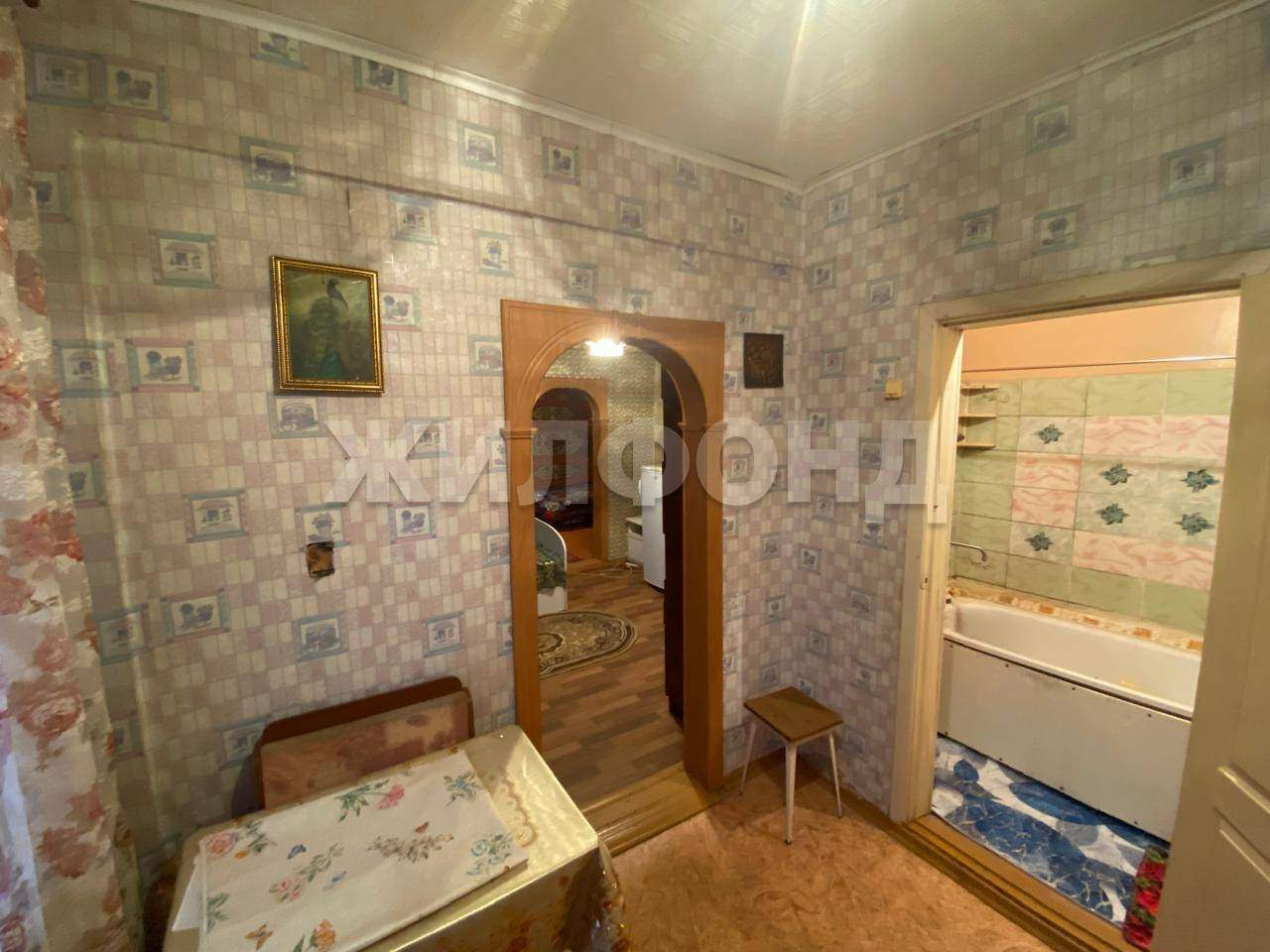Обычное состояние, на полу ДВП, на стенах обои, на потолке ПВХ-плитка. Все окна ПВХ. Санузел с ванной - совмещенный. Новым собственникам остается вся мебель.