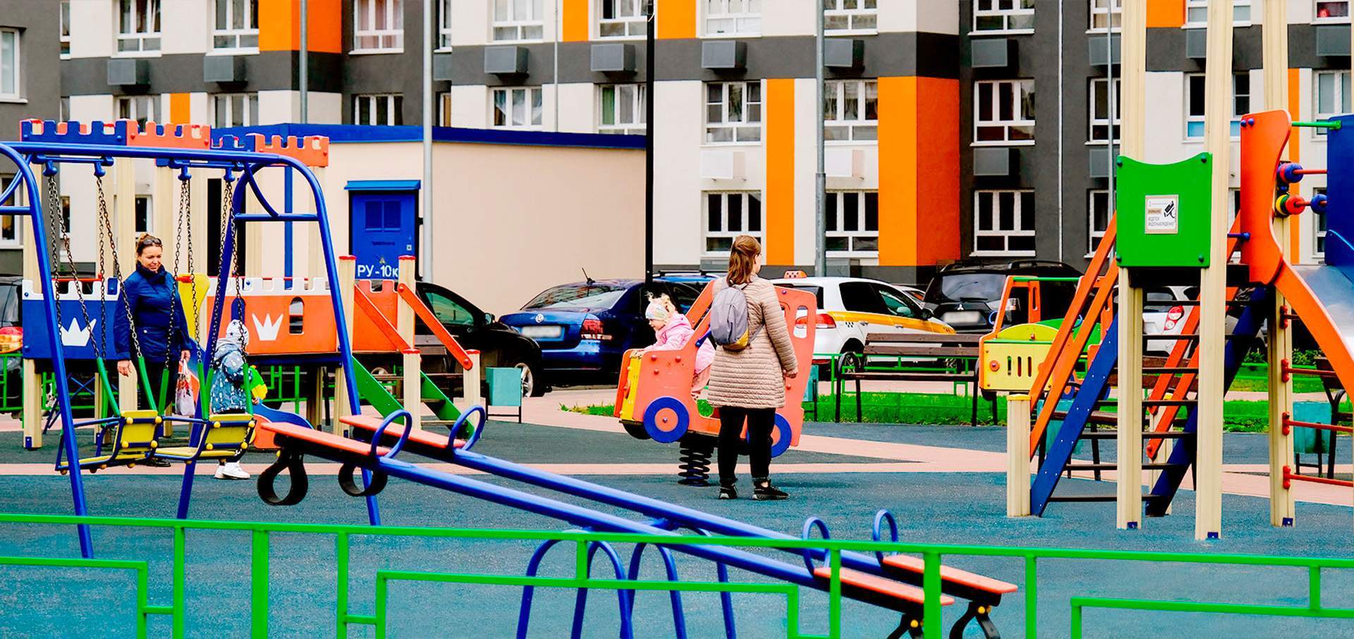 Отдельная многоуровневая парковка. Инфраструктура: детский сад, детские площадки, супермаркет.