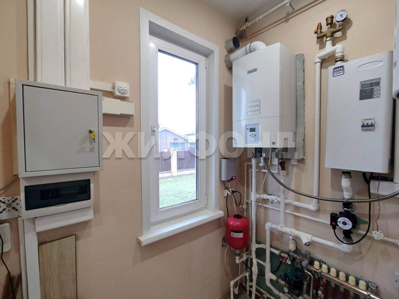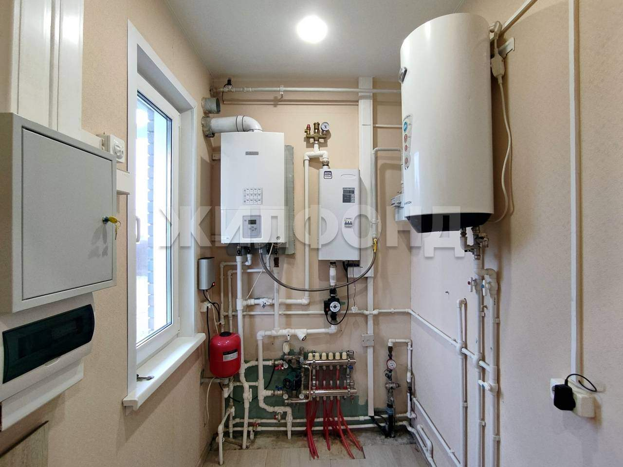 Отопление: Газовый котел + Электрический (дублирующий) . Теплые полы. Центральное водоснабжение. Электричество - 15 кВт. Автономная канализация (переливной септик) .