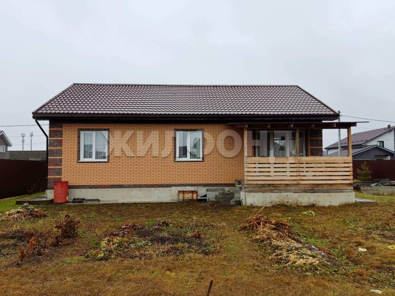 Дом оптимальной площади - 98 кв.м. Две большие спальни (14,7 + 12,6 кв.м. ) , кабинет (10,4 кв.м. ) , который может быть детской комнатой, просторная прихожая и большая кухня-гостиная (40,5 кв.м. ) . Из гостиной с панорамным остеклением есть выход на уютную летнюю веранду. Дом очень теплый, построен по Канадской технологии (минимальные расходы на отопление) , облицован кирпичом. Основание: железобетонные сваи + ленточный фундамент.