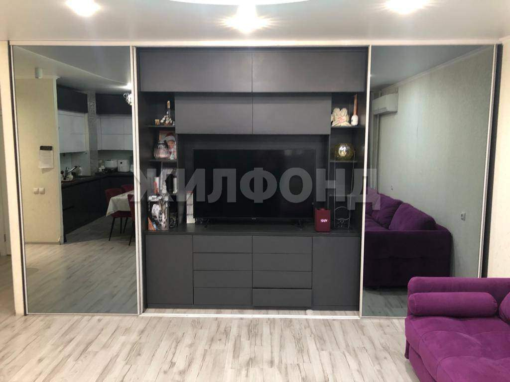 Дизайнерский оригинальный ремонт, потолок натяжной (матовый и глянцевый) с комбинированной системой освещения, на стенах флизелиновые обои, на полу ламинат, стильный кафель в прихожей и ванной. Два большщих оригинальных зеркалных шкафа-купе в зале и прихожей. Просторные комнаты. Зал совмещен с кухней. Совмещенный санузел и ванная выполнены в современном ремонте. Окна квартиры выходят на обе стороны. Две застекленные пластиковым пакетом лоджии. Чистый подъезд, доброжелательные соседи.