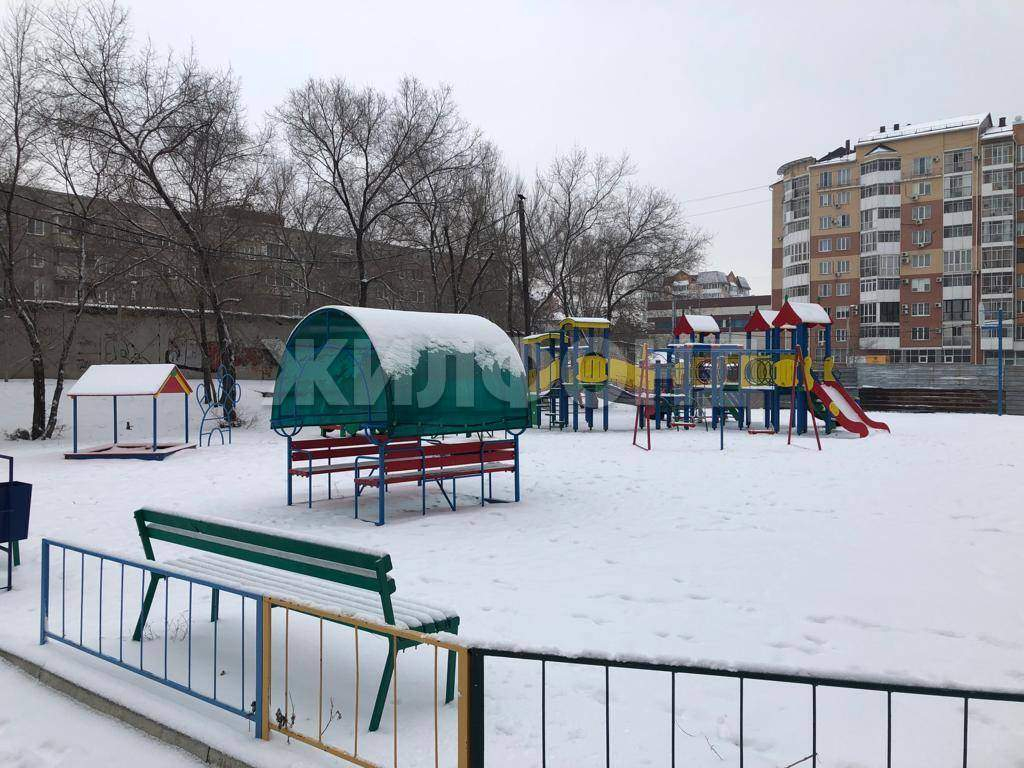 Во дворе детская площадка и места для парковки автомобилей.