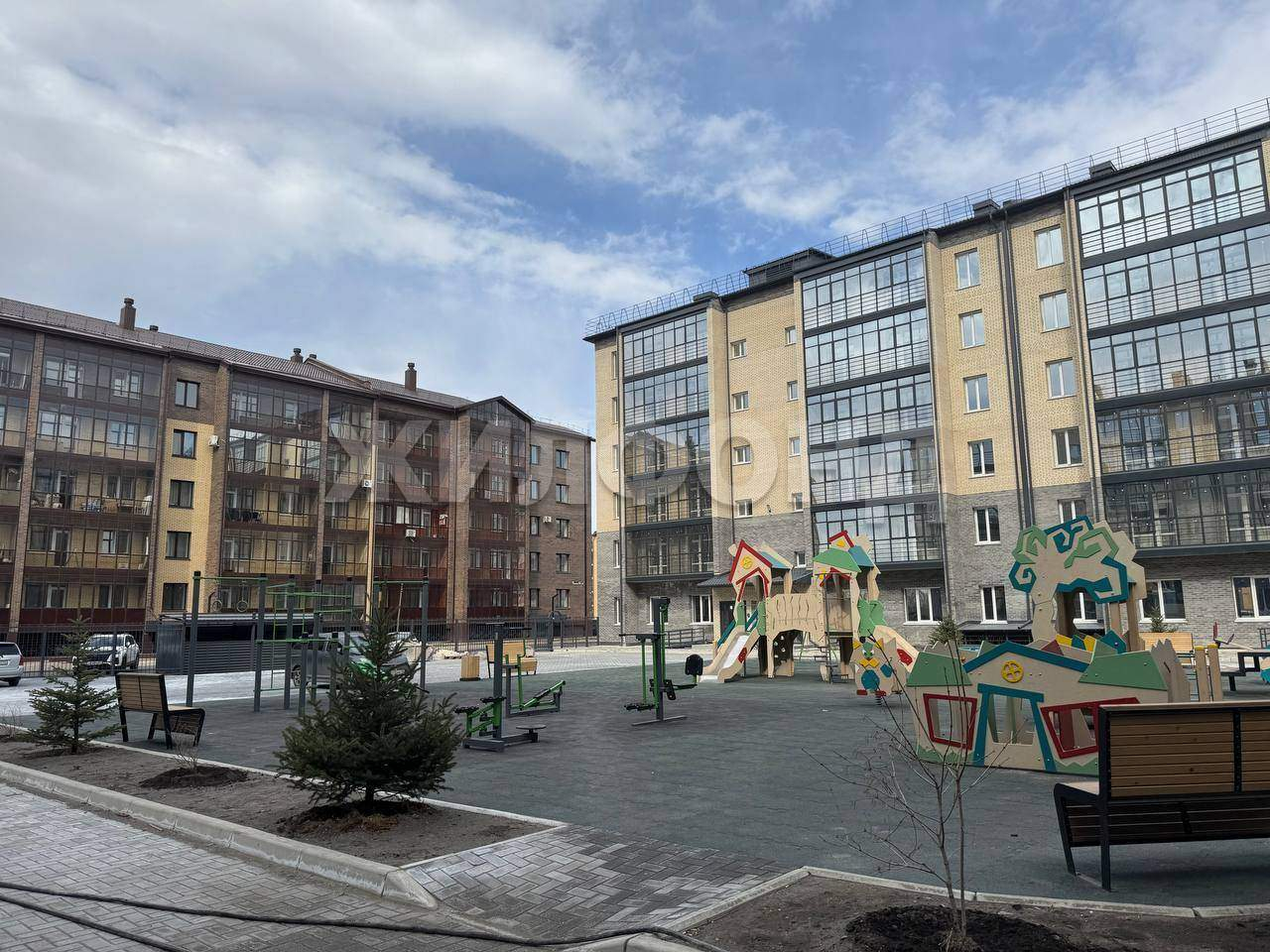 Вся территория внутреннего двора также оснащена видеокамерами, современная детская площадка.