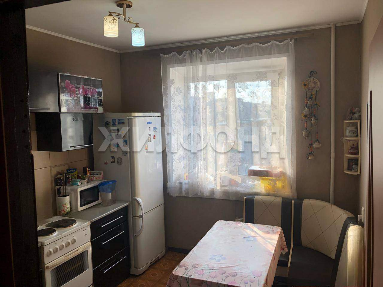 После продажи в квартире остается кухонный гарнитур, встроенный шкаф.