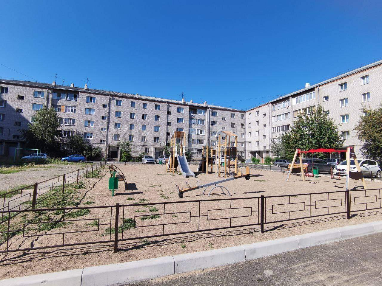 Во внутреннем дворике есть большая детская площадка и открытая автомобильная парковка.