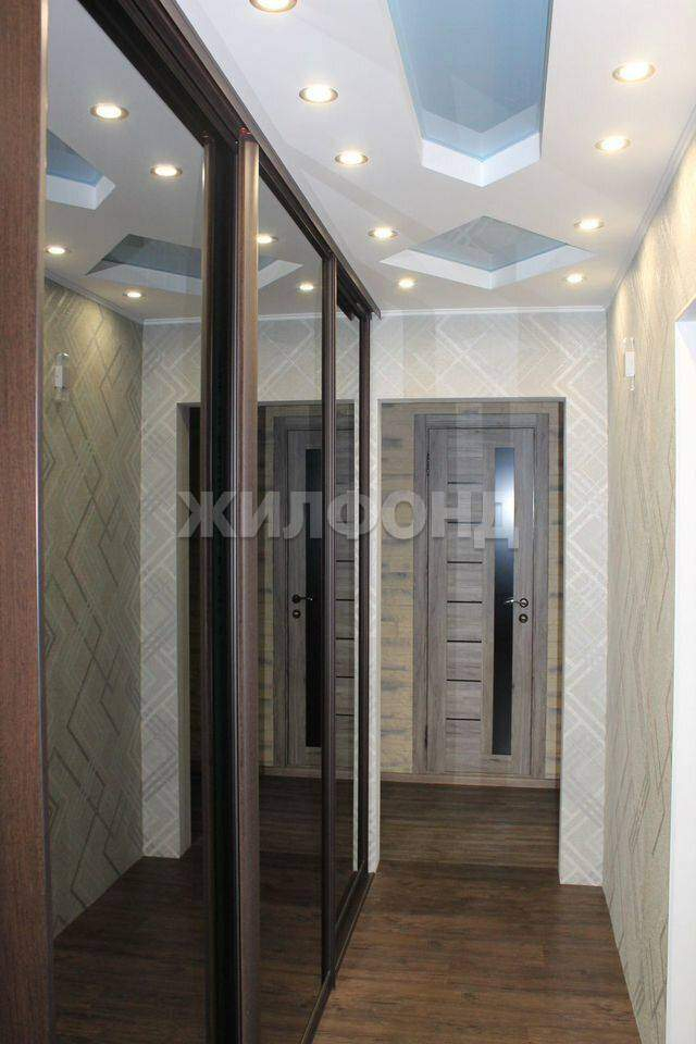 В кориоде огромный встроенный шкаф с затемнёнными зеркалами.
