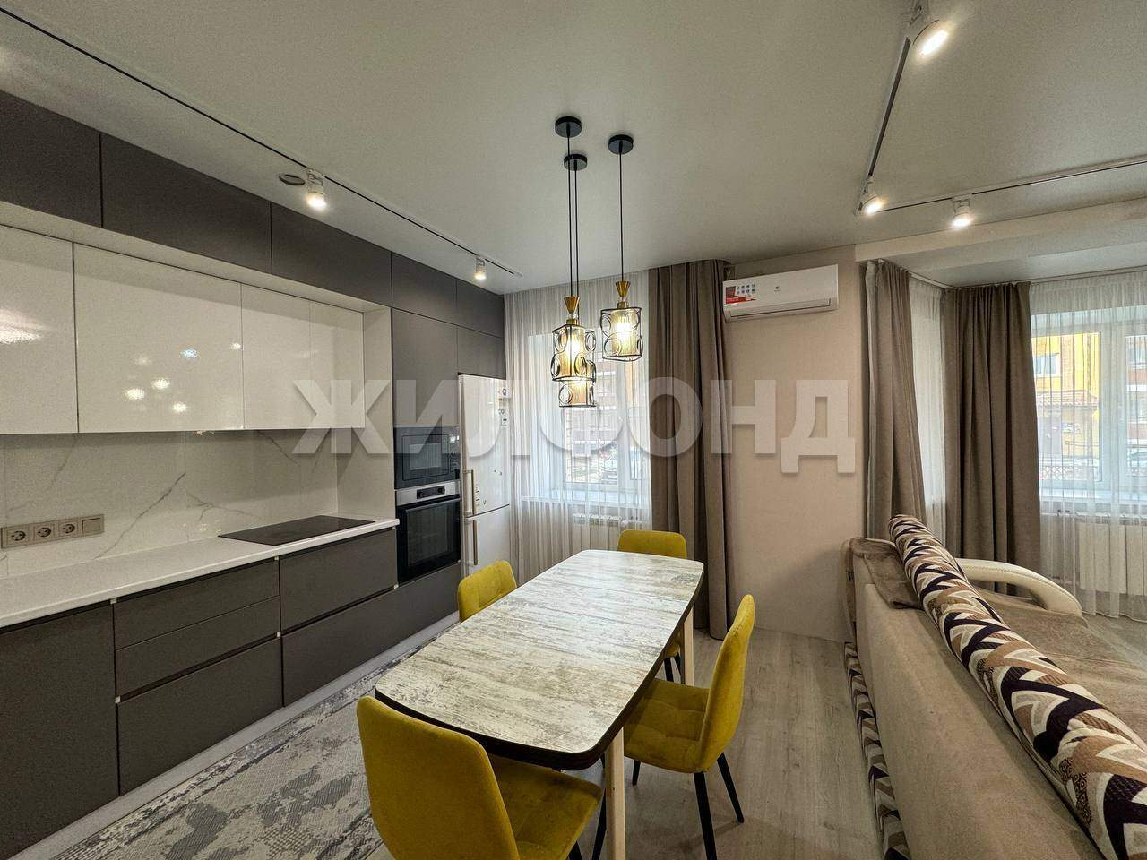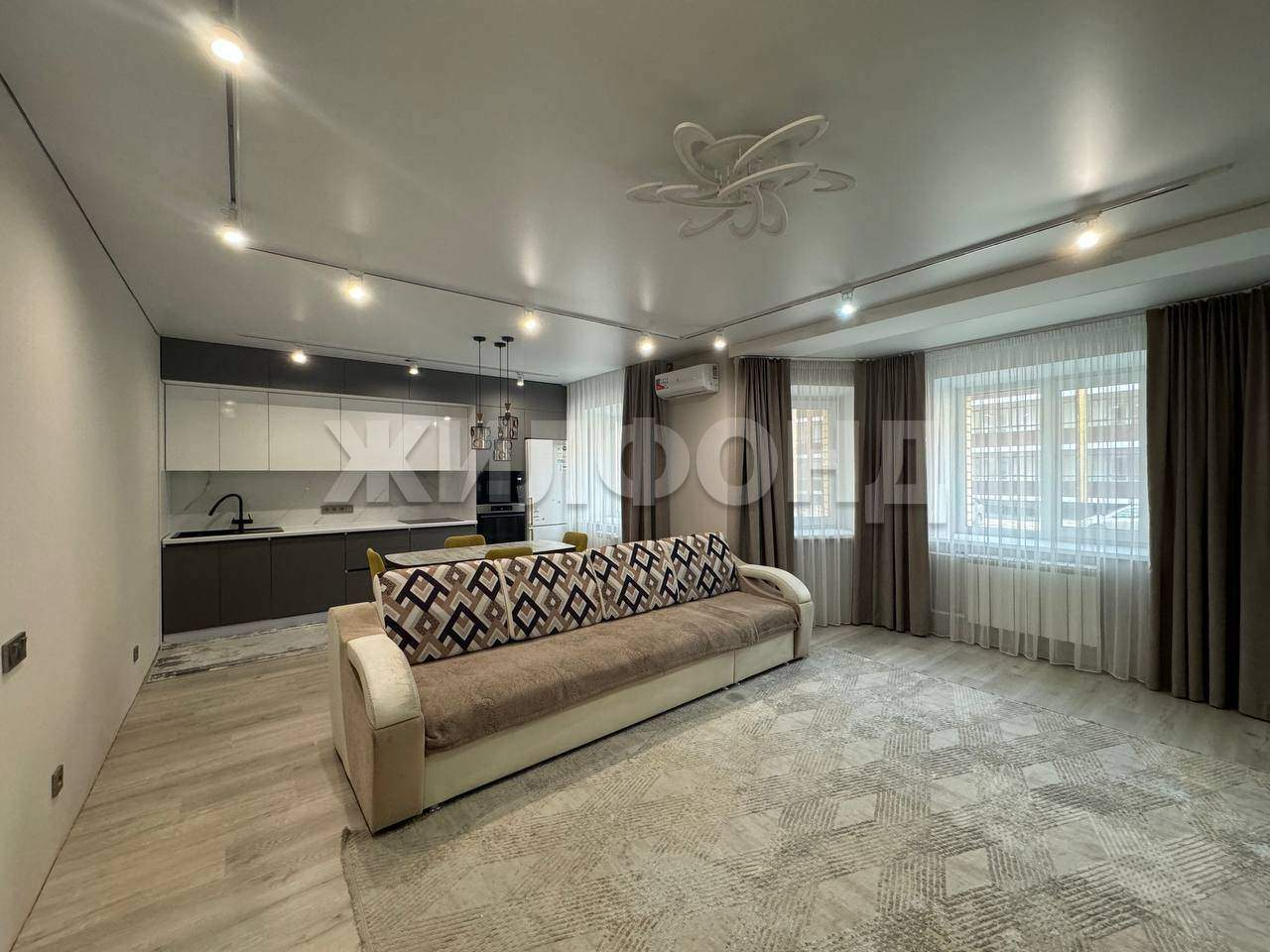 Квартира с качественным современным ремонтом, выполненным в светлых тонах. На полу кварцевый ламинат Fаrgо 81996 толщина 6 мм( в коридоре и санузлах- с подогревом) , натяжной потолок с встроенным освещением. В санузлах- кафель.