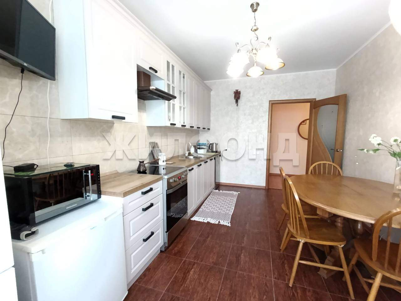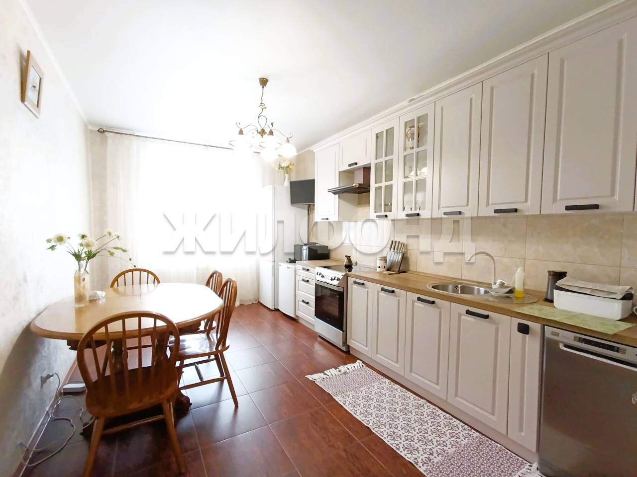 Площадь в 100 квадратных метров дарит свободу творчества- просторная гостиная приглашает собрать близких людей вместе, две спальни и два санузла предлагают комфорт и личное пространство каждому члену семьи, а функциональная кухня, оборудованная новым гарнитуром (Командор) , бытовой техникой и посудомоечной машинкой становится сердцем домашнего очага.