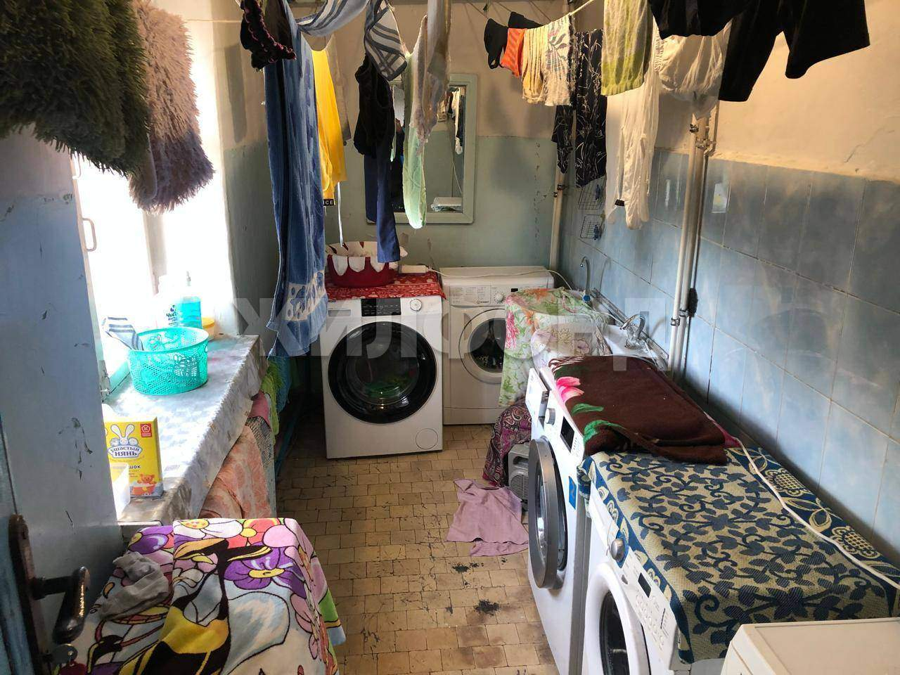 На полу линолеум, на стенах флизелиновые обои, потолок с выровненной штукатуркой. Качественная входная дверь. Уютные места общего пользования - чистая прачечная со стиральной машиной-автомат и закрывающаяся на замок душевая.