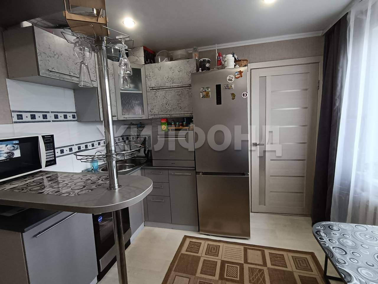 Кухонный гарнитур сделан на заказ под эту квартиру ( остается новым собственникам ) .
