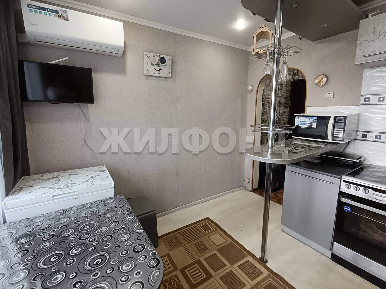В квартире натяжные потолки, новые полы, поменяна проводка. Новый кондиционер ( на гарантии) , установлена система питьевой воды (аквафор) .